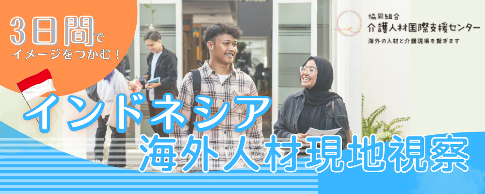 | 内容 | <参加のメリット> ① 視察費用は無料 参加費用は無料。契約も不要。情報収集の一環としてご参加いただけます。航空券、宿泊費、現地での移動・食費などの実費のみとなります。 ② 現地の実態を把握 わずか3日間で、病院・学校・送り出し機関などの教育・生活環境を視察し、現地の実態を把握できます。 ③ 選考に直接同席可能 現地で行われる面接選考に同席し、候補者と直接対面して能力や人柄を確かめる貴重な機会です。 ④ 安心の視察体制 安心の通訳付きで、日本経営の担当者も同行いたします。食事、移動方法などで、迷うことなくお過ごしいただけます。グループで行動しながら、他法人の皆様との懇親や意見交換も可能です。 <視察スケジュール>詳細は下記フォームにご入力後にご案内いたします。現地機関の事情により行程を変更する可能性がございます。 2026年1月28日(水) ジャカルタ空港にて現地集合、候補宿泊先エリアへ移動 希望者のみ夕食懇親会 2026年1月29日(木) 病院・学校・送り出し機関・面接選考を視察・見学 2026年1月30日(金) 病院・学校・送り出し機関・面接選考を視察・見学 2026年1月31日(土) 生活・文化理解のための視察・見学 ジャカルタ空港にて現地解散 <お申込みの流れ> ![]() <現地視察に参加するための各種お手続きについて> 本企画は旅行ツアーではないため、現地までの移動や宿泊のご予約は、すべて参加者様ご自身で行っていただきます。ご不明な点がございましたら、下記旅行代理店へお問い合わせください。 パスポート 海外渡航にはパスポートが必要です。有効期限が6ヶ月以上必要となります 。 海外旅行保険 安全のため、別途、各自での加入をお願いいたします 。 航空券 お好きな便を各自でご予約ください。現地集合・現地解散となります 。 下記フォームへご入力いただきますと、便の候補情報を含む詳細情報をご案内いたします。 宿泊先 お好きな宿を各自でお手配ください。朝食付きの宿泊予約が便利です 。 視察のための移動利便性を考慮し、宿泊候補先の周辺にご予約ください 。 下記フォームをご入力いただきますと、宿泊先の候補情報等、詳細情報をご案内いたします。 上記、ご予約に関する相談先(旅行代理店) ご予約にあたっては、旅行代理店へ依頼することも可能です。相談をご希望の方は各自でお問い合わせください。 「協同組合介護人材国際支援センター 1月28日~31日のインドネシア視察の件」とお伝えください。 【旅行代理店】 株式会社 悠遊ワールド(東京都知事登録旅行業 第3-4066号) HP:http://www.youyouworld.com/ 電話:03-5332-7522 Mail:staff@youyouworld.com 営業時間:平日/10:00~18:00 定休日/土日祝 |
