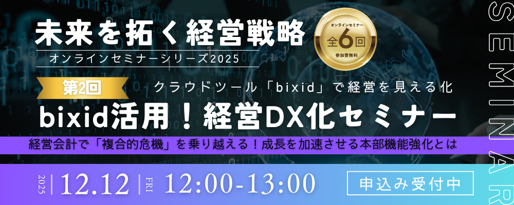 対象 | • 中小企業の経営者、経営幹部の方 • CFO、経理・財務・経営企画部門の責任者の方 • DX推進や業務改革、本部機能の強化をご検討中の方 • 部門間の連携を強化し、組織全体の生産性を向上させたいとお考えの方 |