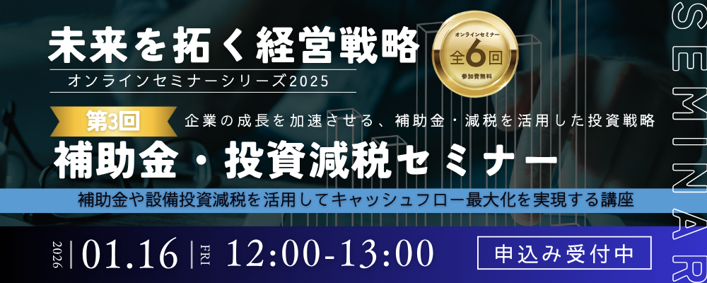 本セミナーでは、補助金や設備投資減税の基本から2026年度補助金の最新動向まで、新年度のスタートダッシュを決めるための実践的なヒントを体系的に解説します。