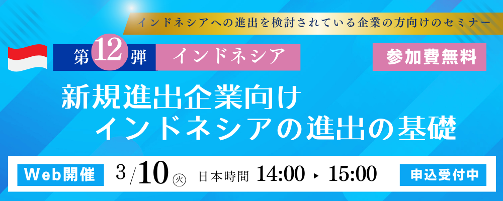インドネシアへの進出を検討されている企業の方向けのセミナーになります。