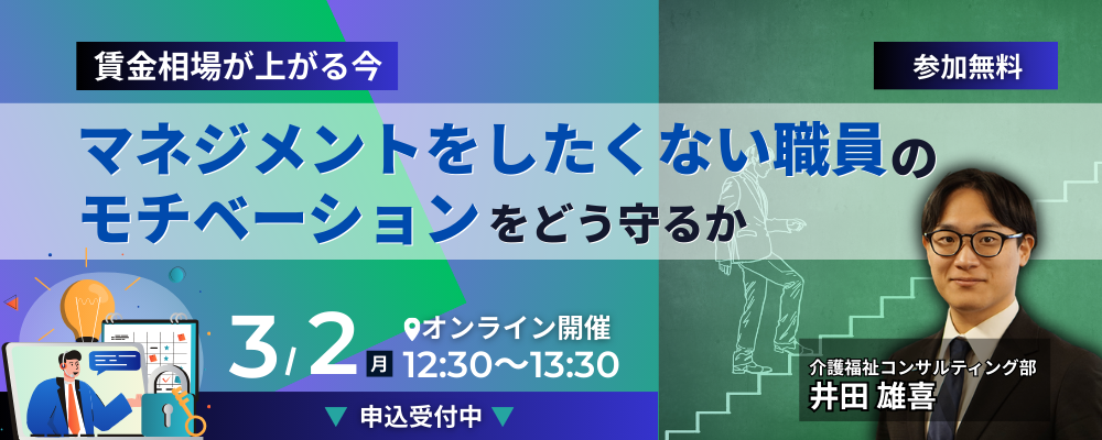 労働人口の減少により人材確保が難しさを増す中、報酬改定ではアウトカムが重視され、サービスの質の向上がこれまで以上に求められています。そのため、「採用」だけでなく、「育成」「定着」までを一体的に進めていくことが不可欠な時代となっています。一方、法人として活用できる人件費原資には限りがあり、処遇の改善や評価の重点がマネジメント層に配分されやすいという現実もあります。本セミナーでは、限られた原資の中でも、現場職員の貢献を可視化し、育成や定着につなげるための考え方や具体的な方法についてお伝えします。
