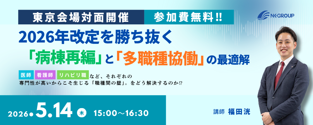 本セミナーでは、全国1,700件以上の病院を支援してきた実例をもとに、2026年の改定をふまえて「これから院内の体制をどう整えていくべきか」を具体的にお伝えします。